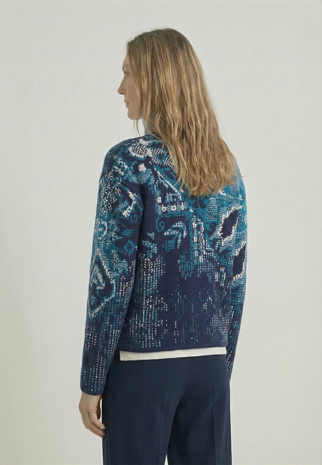 Jacquard Rollneck Jacket, Kilim Pattern - Navy
