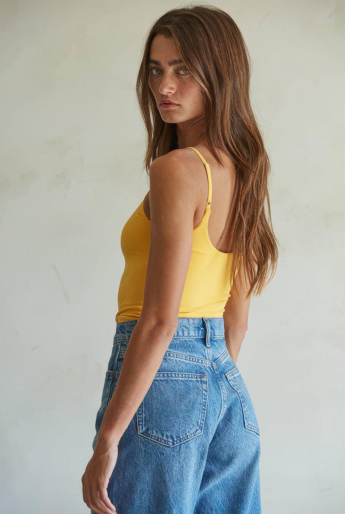 An elevated essential, this seamless bodysuit is designed with a smooth double-layer finish for a flattering, sculpted fit. Featuring fine spaghetti straps, a rounded neckline, and a snap crotch closure, it’s an easy foundation piece for everyday styling.