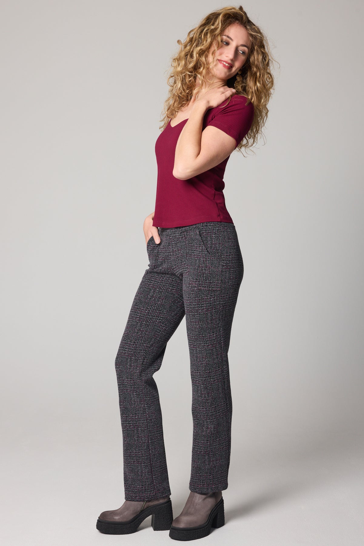Work-to-weekend versatile. The Grey Tweed knit reads refined like suiting, feels easy like loungewear, and features our signature curved pockets.