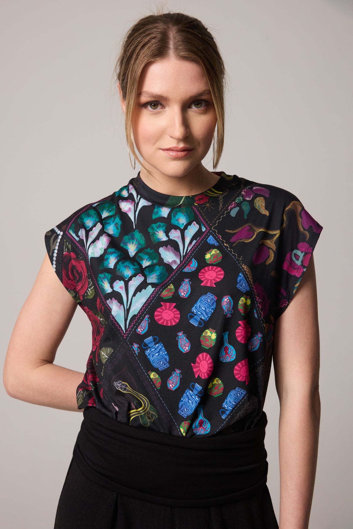 - Soft brushed jersey made of recycled polyester and Lycra for stretch