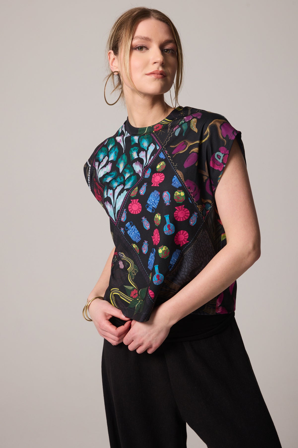 - Muscle tee silhouette with extended shoulders